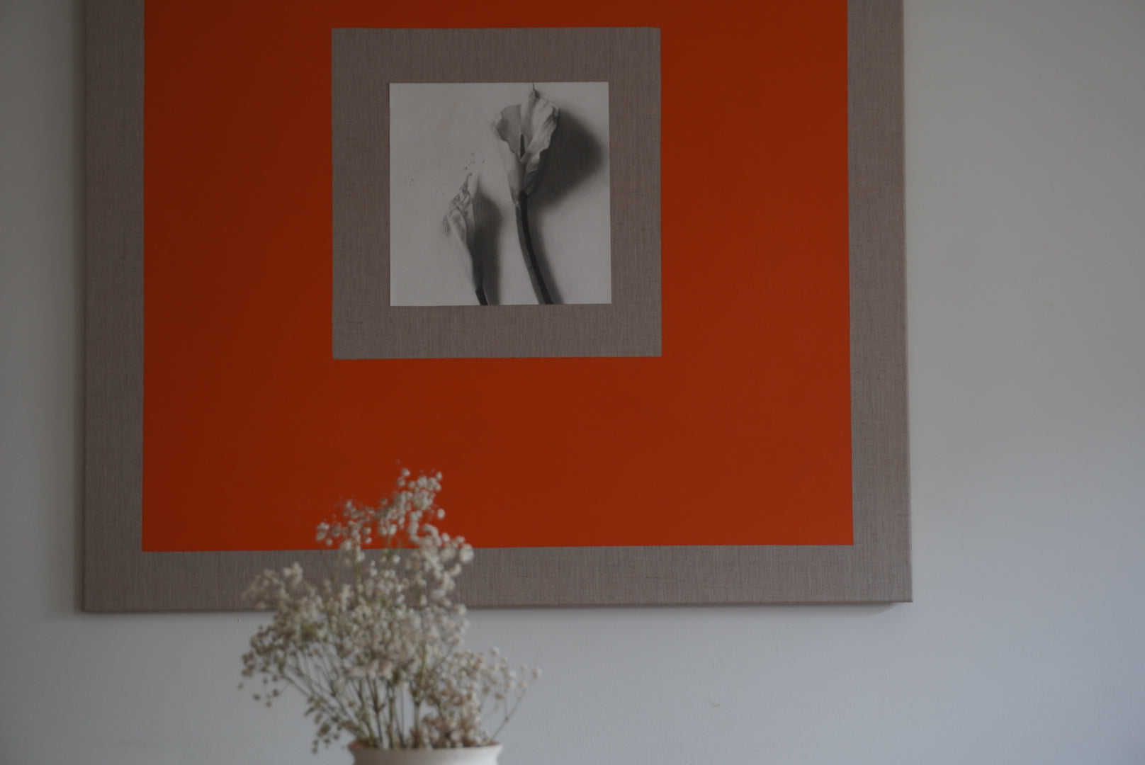 Técnica mixta de acrílico y carboncillo sobre lienzo de lino.