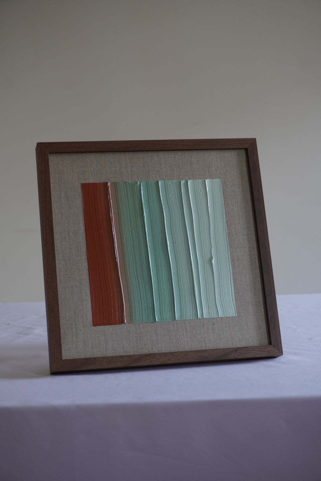 Acrílico sobre lámina de lino con mezcla de técnica en texturas. Incluye marco.